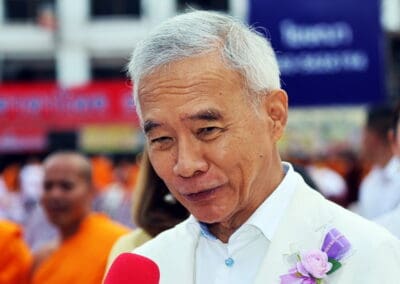 วันนี้ พี่น้องประชาชนออกมานับหมื่นคน ถือว่าเป็นการรวมพลังชาวโคราช ในการที่จะทําความดีเพื่อบ้านเมือง และอากาศดีมาก อากาศเย็น อากาศเป็นใจ อากาศดี ถือว่าเป็นวันดี เป็นมงคลกับจังหวัดนครราชสีมา เป็นมงคลกับพี่น้องชาวโคราชหลายหมื่นท่านที่มาร่วมทําบุญตักบาตร ภิกษุสงฆ์ 10,000 รูป เป็นบรรยากาศที่ดีคนโคราชรักกัน