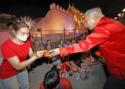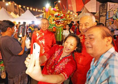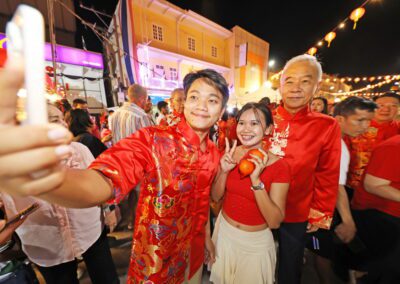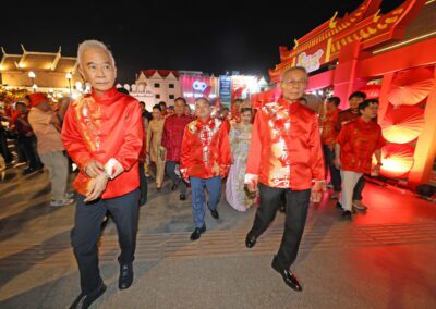 บรรยากาศงานเต็มไปด้วยกิจกรรมทางวัฒนธรรม การแสดงเชิดสิงโต มังกรทอง การแจกส้มมงคล และร้านค้าจำหน่ายสินค้า สร้างสีสันและกระตุ้นเศรษฐกิจท้องถิ่นอย่างคึกคักตลอด 3 วันของการจัดงาน