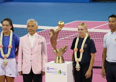 เมื่อวันที่ 29 ม.ค. 2567 นายสุวัจน์ ลิปตพัลลภ อดีตรองนายกรัฐมนตรี และนายกกิตติมศักดิ์สมาคมกีฬาลอนเทนนิสแห่งประเทศไทย ในพระบรมราชูปถัมภ์ เป็นประธานในพิธีเปิดการแข่งขันเทนนิสหญิง ดับเบิลยูทีเอ 250 รายการ Thailand Open 2024 presented by E@ (ไทยแลนด์ โอเพ่น 2024 พรีเซนเต็ด บาย อีเอ) โดยมี นายคมกริช เจริญพัฒนสมบัติ รองผู้ว่าราชการจังหวัดประจวบคีรีขันธ์ นายปรีชา ลาลุน รองผู้ว่าการฝ่ายกีฬาอาชีพและกีฬามวย การกีฬาแห่งประเทศไทย (กกท.) พร้อมได้มอบพวงมาลัยดอกไม้สดให้แก่ เทย์ลาห์ เพรสตัน นักเทนนิสสาวออสเตรเลีย วัย 18 ปี จากออสเตรเลีย และ จู หลิน นักหวดจีนวัย 30 ปี แชมป์เก่าไทยแลนด์ โอเพ่น 2023 ก่อนถ่ายภาพร่วมกับผู้สนับสนุนการแข่งขัน