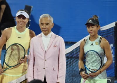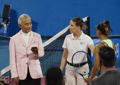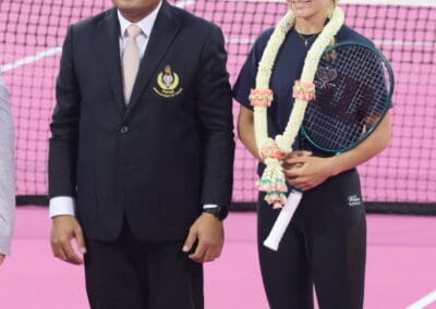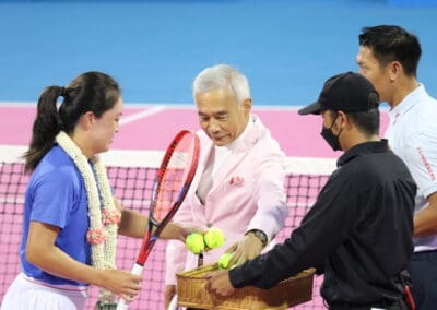 “นอกจากเรื่องของการกีฬาแล้ว ก็ยังได้เรื่องการท่องเที่ยว การกระตุ้นเศรษฐกิจผ่านการแข่งขัน Thailand Open ซึ่งต้องขอบคุณผู้สนับสนุนที่ทำให้เราได้เจ้าภาพจัดกีฬาระดับโลกในครั้งนี้ และต้องขอบคุณนักกีฬาเทนนิสระดับโลกที่มาแข่งขัน และช่วยกันส่งเสริม Soft Power ของประเทศไทย ผ่านกิจกรรมต่างๆ เช่น การตักบาตร การฝึก มวยไทย การทำอาหารไทย และการเดินแบบผ้าไหมไทย“