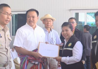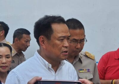 ส่วนจุดที่ 2 นายอนุทินฯ ได้ไปติดตามสถานการณ์น้ำอุปโภคบริโภค ที่สถานีผลิตน้ำประปา การประปาส่วนภูมิภาค สาขานครราชสีมา อ.เฉลิมพระเกียรติ จ.นครราชสีมา ซึ่งกำลังประสบปัญหาปริมาณน้ำสำรองไม่เพียงพอต่อการอุปโภคบริโภค การประปาส่วนภูมิภาคจึงขอรับสนับสนุนงบประมาณจาก Thai Water Plan เพื่อนำมาแก้ปัญหาเร่งด่วน เรื่องกรซื้อน้ำจากบ่อทรายเอกชน โดยวางท่อ เป็นระยะทาง 3.8 กิโลเมตร ใช้งบปราณ 50 ล้านบาท ส่วนแผนระยะยาว คือการเสริมคันดินสระเก็บน้ำดิบโนนไม้แดง ขึ้นอีก 1.5 เมตร ซึ่งสามารถเก็บกักน้ำได้เพิ่มอีก 600,000 ลูกบาศก์เมตร ใช้งบประมาณ 74 ล้านบาท และจัดซื้อที่ดิน 430 ไร่ เพื่อขุดสระสำรองน้ำดิบ ความจุ 4.1 ล้านลูกบาศก์เมตร สำรองน้ำได้นาน 3 เดือน ใช้งบประมาณ 172 ล้านบาท กับก่อสร้างสระสำรองน้ำดิบ พร้อมวางท่อน้ำดิบและระบบสูบน้ำ ใช้งบ 304 ล้านบาท