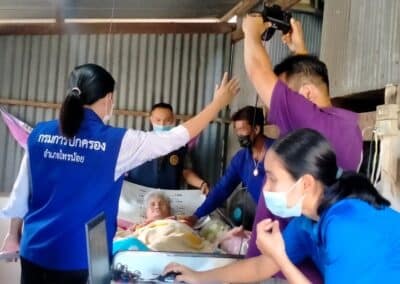 นางสาววรรณี วุฒิฤทธากุล นายอำเภอไทรน้อย มอบหมาย ปลัดอำเภอ(หัวหน้ากลุ่มงานทะเบียนและบัตร) พร้อมด้วย จนท.สำนักงานพัฒนาสังคมและความมั่นคงของมนุษย์จังหวัดนนทบุรี จนท.ศูนย์บริหารการทะเบียนจังหวัดนนทบุรี เจ้าหน้าที่ฝ่ายทะเบียนฯ อ.ไทรน้อย อพม.อ.ไทรน้อย ผู้ใหญ่บ้าน จนท.อส. อ.ไทรน้อย และเจ้าหน้าที่ตำบลสมาร์ททีม