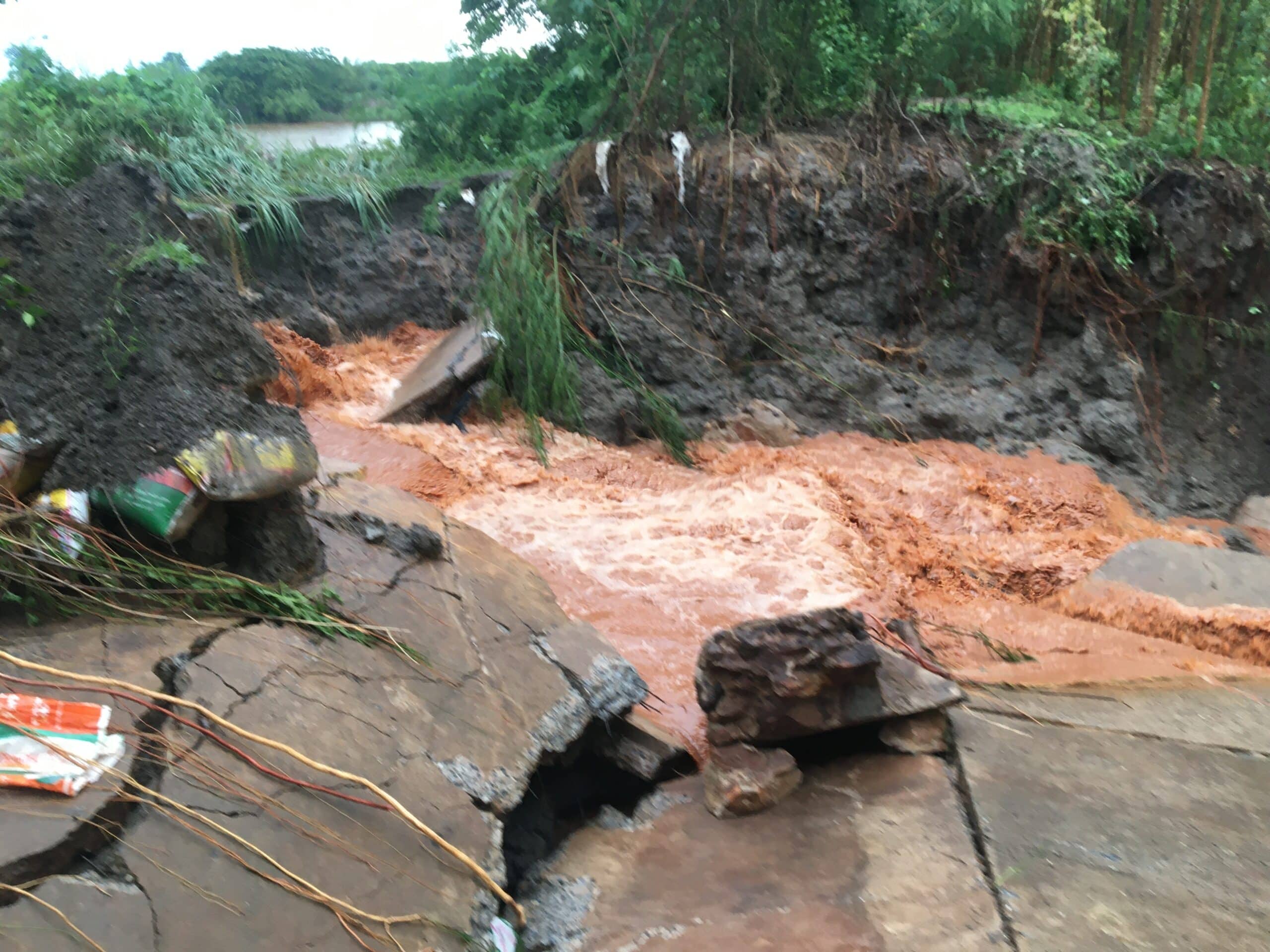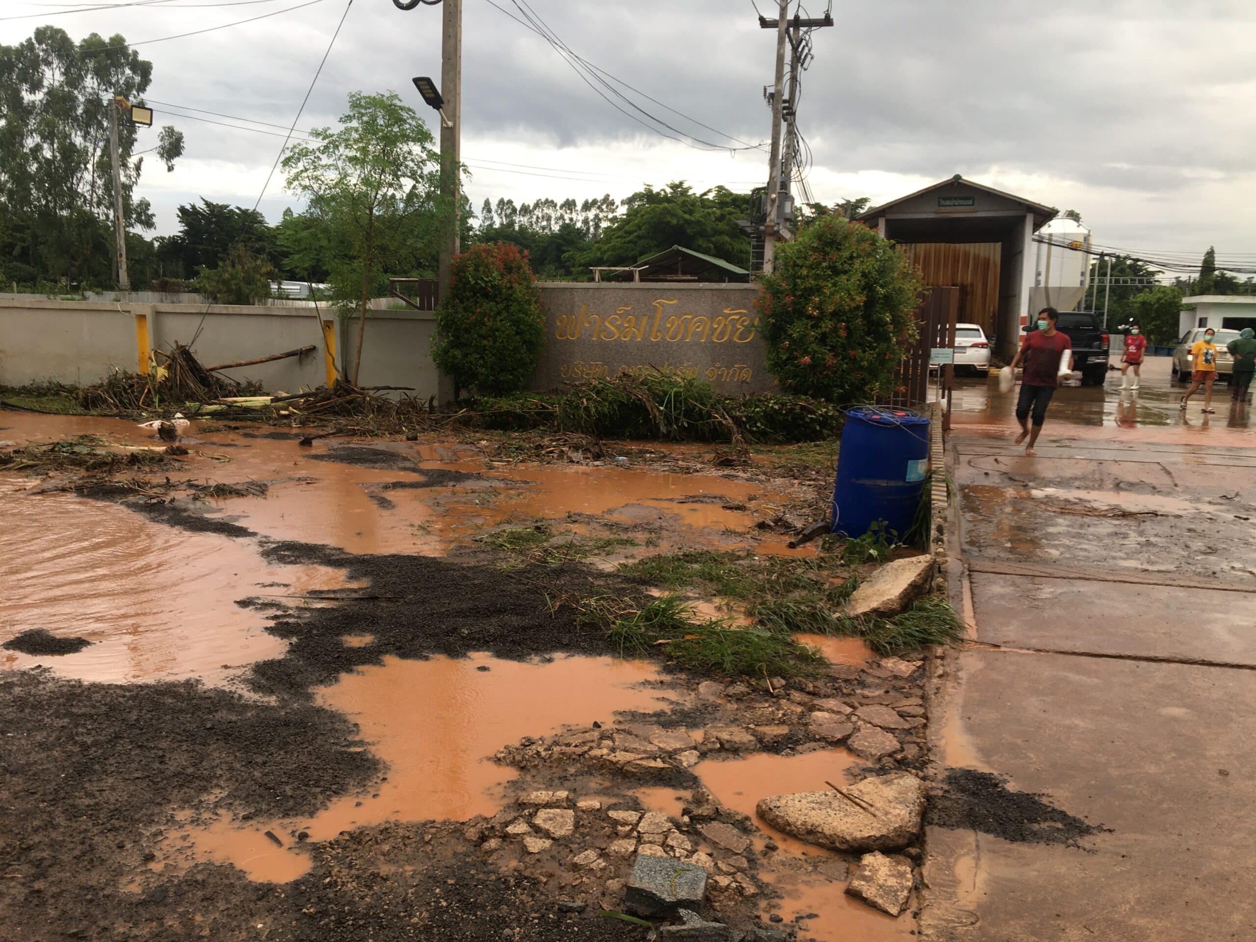 อ่างเก็บน้ำที่อำเภอโชคชัยโคราชแตก หลังเกิดฝนตกหนักกว่า 2 ชม.