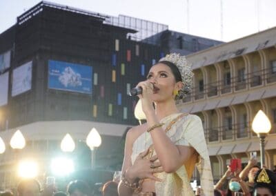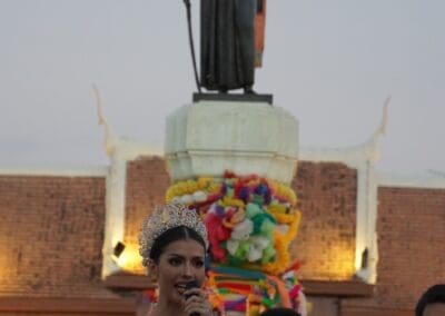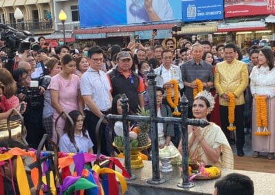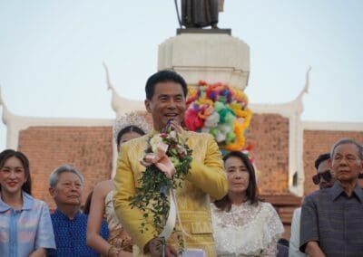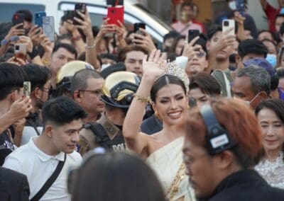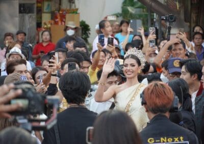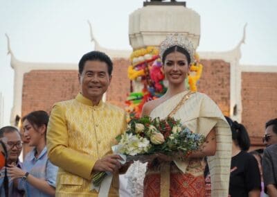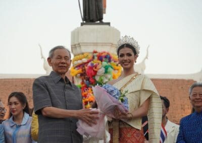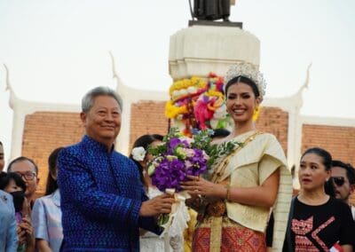 วันที่ 11 ธ.ค. 66 เวลา 17.00 น. นายเทวัญ ลิปตพัลลภ หัวหน้าพรรคชาติพัฒนากล้า ที่ปรึกษาของนายกรัฐมนตรี นายแพทย์วรรณรัตน์ ชาญนุกูล สส.ระบบบัญชีรายชื่อ พรรคชาติพัฒนากล้า นายประเสริฐ บุญชัยสุข นายกเทศมนตรีนครนครราชสีมา พร้อมด้วยรองนายกเทศมนตรี สมาชิกสภาเทศบาลร่วมต้อนรับและแสดงความยินดีกับ แอนโทเนีย โพซิ้ว รองชนะเลิศอันดับ1 จากเวทีประกวดมิสยูนิเวิร์ส 2023 และได้มอบของที่ระลึกต้นแบบลายอัตลักษณ์ของโคราชให้กับแอนโทเนีย โดยมีนายสยาม ศิริมงคล ผู้ว่าราชการจังหวัด นายกเหล่ากาชาดจังหวัดนครราชสีมา และหัวหน้าส่วนราชการของจังหวัดนครราชสีมา ร่วมมอบดอกไม้แสดงความยินดี ณ ลานอนุสาวรีย์ท้าวสุรนารี โดย แอนโทเนีย ได้นำดอกไม้ ธูป เทียน กราบสักการะอนุสาวรีย์ท้าวสุรนารี หรือย่าโม สิ่งศักดิ์สิทธิ์คู่เมืองโคราช พร้อมกับโบกมือทักทายประชาชนชาวโคราช และนักท่องเที่ยวที่มาให้กำลังใจกันอย่างเนืองแน่น