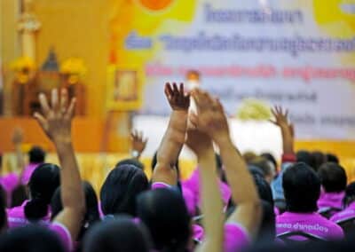 ฉะนั้น พอเกิดความเปลี่ยนแปลง วันนี้ หัวข้อกีฬา ซึ่งเดิมจะจำกัดคนไปดูกีฬา ซึ่งช่วงแรกๆ จะไม่มีคนเข้าไปดูจากเมื่อก่อนการแข่งฟุตบอลสวาทแคท ทีมโคราช เคยมีคนดูเต็มสนามกีฬา 80 พรรษา 27,000 คน ตอนหลังโควิด 8,000- 10,000 ลดลงจนปัจจุบัน เหลือ 0 เพราะสมาคมกีฬาไม่ให้ เข้าไปดู หรือต่างประเทศฟุตบอลพรีเมียร์ แข่งครั้งเดียว คนดูประมาณ 70,000 คน ค่าดูจะเก็บได้ประมาณ 600 ล้านบาท แต่วันนี้ 0 ประเทศอังกฤษ ไม่ให้แฟนบอลเข้าสนามเหมือนกัน แต่ใช้วิธีเอารูปคนเชียร์ฟุตบอลไปติดตรงที่นั่งเวลาเชียร์จะมีเสียงแอฟแฟก เป็นเสียงคนเชียร์แทน