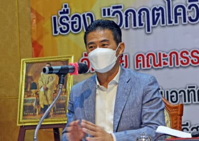 นายเทวัญ กล่าวว่าสถานการณ์โควิด ทำให้วิถีชีวิตของทุกคนเปลี่ยนไปทั้งการทำงาน การค้า การลงทุนต่างๆ ยกตัวอย่าง เราไม่เคยคิดเลยว่าเราจะขายของที่ตลาดไม่ได้ ไปซื้อของที่ตลาดไม่ได้ หรือลูกหลานเราจากที่ตื่นเช้า 7-8 โมงไปโรงเรียน แต่ตอนนี้ไม่ได้ไปโรงเรียนเพราะโรงเรียนปิด ทุกอย่างปิดหมด ถึงแม้วันนี้ เราคิดว่าโควิดดีขึ้นแต่จริงๆ ไม่ดีขึ้น เพราะวันนี้ตัวเลขปัจจุบันมีผู้ติดเชื้อ 50,000 คน และคนเสียชีวิตประมาณ 60 คน โคราชเรา ผมย้ำเดิมที่ประมาณ 500-600 คน แต่ว่าวันนี้ติดกว่า 1300-1400 คน แต่เนื่องจากว่าคนตายน้อย เพราะเรามีภูมิคุ้มกันหมู่จากการได้ฉีดวัคซีน