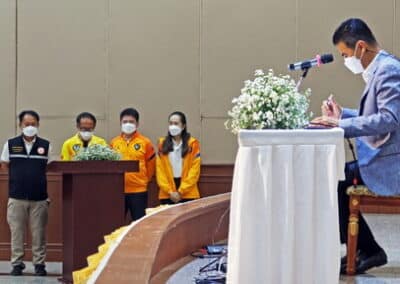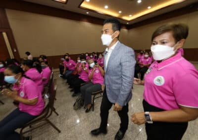 โดยมี นายวัชรพล โตมรศักดิ์ สส.นครราชสีมา เขต 2 พรรคชาติพัฒนา กล่าวรายงานร่วมกับวิทยากร และผู้เข้าอบรมซึ่งเป็นคณะกรรมการพัฒนาสตรีอำเภอเมือง จังหวัดนครราชสีมา ทั้ง 25 ตำบล จำนวน 500 คน แบ่งเป็น 2 ภาคๆ ละ 250 คน นำทีมโดย นางสุทิน ชาติพุดซา ประธานคณะกรรมการพัฒนาสตรีอำเภอเมืองนครราชสีมา ภายใต้มาตราการของศูนย์บริหารสถานการณ์การแพร่ระบาดของโรคติดเชื้อไวรัสโคโรนา 2019 (โควิด-19) หรือ ศบค.