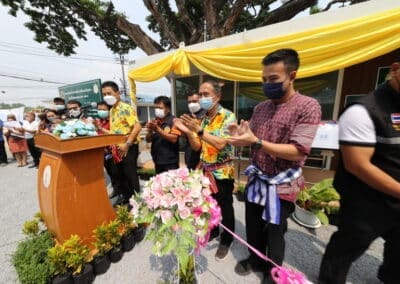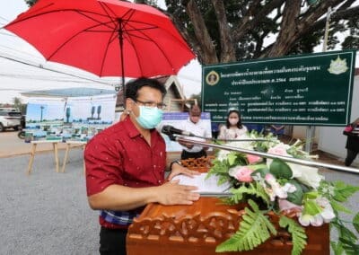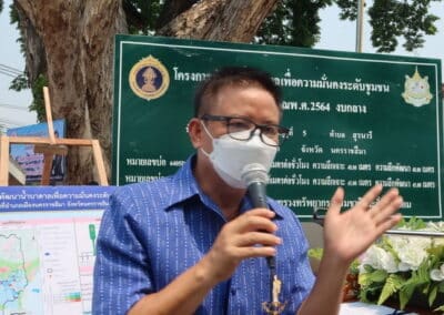 ด้าน ผอ.นายศักดิ์ฉลาด ศรีวิชา กล่าวว่าเรามีโครงการน้ำมั่นคง ชุมชน ปีงบประมาณ 64-65 งบกลาง ทางสำนักงานทรัพยากรน้ำบาดาล เขต 5 ได้รับงบประมาณโครงการน้ำมั่นคง ชุมชน 24 แห่ง ใน 88 จังหวัด ผมรับผิดชอบ 88 จังหวัด ใน 24แห่งลงในอำเภอเมือง 11 แห่ง ด้วยฝีมือของส.ส.วัชรพล และ ท่านเทวัญ ลิปตพัลลภ ซึ่งท่านทั้งสองได้ค่อยประสาน กับ ท่าน “ศักดิ์ดา วิเชียรศิลป์” อธิบดีกรมทรัพยากรน้ำบาดาล บอกว่า ทางสุรนารี และหนองบัวศาลา และที่ต่างๆ มีความเดือดร้อนมาก สั่งการให้ผมประสานงานกับส.ส.วัชรพล ช่วยไปดูให้หน่อยซึ่งพี่น้องประชาชนเดือดร้อนจริงๆ หลายที่มีน้ำแต่มีน้ำที่ไม่สะอาด ซึ่งผมไปดูน้ำมีไส้เดือยออกมาด้วย จึงเร่งดำเนินการโครงการน้ำมั่งคง ให้อำเภอเมืองได้ 11 จุด และสุรนารี อีก 2 จุด ต้องขอขอบคุณ ท่านนายกบรรจบ บ้านใหม่อีก 1 จุด