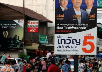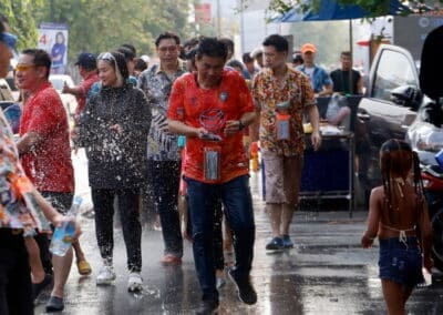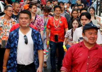 นายเทวัญ ลิปตพัลลภ เลขาธิการพรรคชาติพัฒนากล้า ผู้สมัคร ส.ส. เบอร์ 5 เขต 1 พรรคชาติพัฒนากล้า (ชพก.) พร้อม “วิว” นางสาวเยาวภา บุรพลชัย โฆษกพรรคฯ และนักฟุตบอลทีมสวาดแคทได้มาร่วมเล่นน้ำสงกรานต์กับพี่น้องประชาชนและนักท่องเที่ยวบริเวณหน้าลานอนุสาวรีย์ท้าวสุรนารี (ย่าโม)