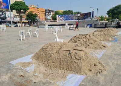 นครราชสีมา – วันนี้ (11 เมษายน 2566) ผู้สื่อข่าวรายงานว่า ที่บริเวณถนนราชดำเนิน หน้าอนุสาวรีย์ท้าวสุรนารี อ.เมือง จ.นครราชสีมา เทศบาลนครนครราชสีมา ได้มีการนำโครงเหล็กมาติดตั้งเพื่อทำเป็นอุโมงค์น้ำ 2 จุด เป็นระยะทางยาวกว่า 500 เมตร เพื่อจัดงานเทศกาลสงกรานต์ประจำปี 2566 ซึ่งทางเทศบาลนครนครราชสีมา จะร่วมกับจังหวัดนครราชสีมา และ อบจ.นครราชสีมา จัดขึ้นระหว่างวันที่ 13-15 เม.ย.66