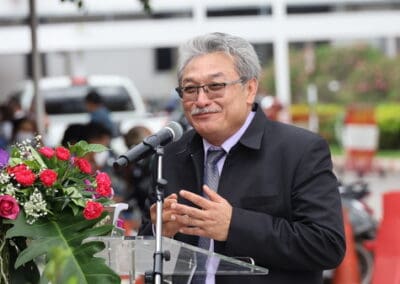 นายวิเชียร จันทรโณทัย อดีตผู้ว่าราชการจังหวัดนครราชสีมา กล่าวว่าเดิมทีที่ดินแปลงนี้เป็นพื้นที่ว่างเปล่า อยู่ติดกับตลาดสุรนคร และล้ำเข้ามาในเขตพื้นที่โรงพยาบาลมหาราชนครราชสีมา ซึ่งเมื่อ 4 ปีที่แล้ว ขณะที่ตนเองยังดำรงตำแหน่งเป็นผู้ว่าราชการจังหวัดนครราชสีมา ได้ลงพื้นที่แก้ปัญหาน้ำท่วมบริเวณโรงพยาบาลมหาราช และพบว่ามีพื้นที่ว่างเปล่าอยู่ จึงได้สอบถามเพื่อติดต่อขอซื้อที่ดังกล่าว เพื่อมอบให้กับโรงพยาบาลนำไปใช้ทำประโยชน์ ต่อมาครอบครัวสุวรรณชาติ จึงแสดงความประสงค์ว่าจะขอบริจาคที่ดินผืนนี้ให้กับโรงพยาบาลมหาราชนครราชสีมา แต่ติดปัญหาเรื่องของการทำเอกสารต่างๆ เพื่อโอนที่ดินไปให้กรมธนารักษ์ กระทรวงการคลัง จนเวลาล่วงเลยมาหลายปี กระทั่งตนเองเกษียณอายุราชการมาแล้วก็ยังไม่เสร็จ และเพิ่งมาดำเนินการเสร็จเมื่อเร็วๆ นี้ ดังนั้น จึงได้ทำพิธีรับมอบที่ดินบริจาคอย่างเป็นทางการ เพื่อให้โรงพยาบาลได้นำไปใช้ประโยชน์ต่อไป