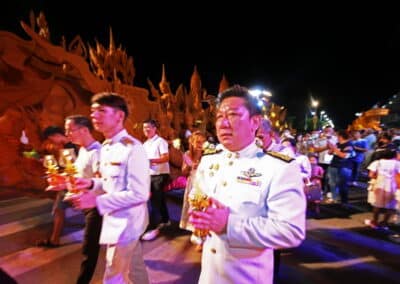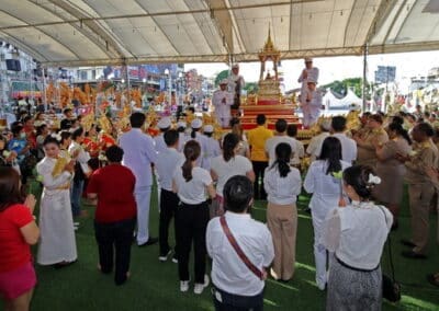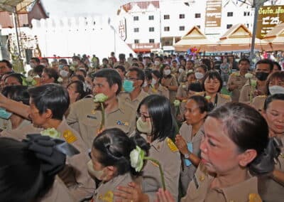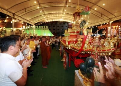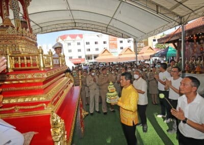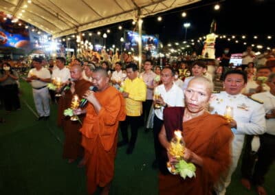 “วันนี้ก็ได้ไปอันเชิญพระบรมสารีริกธาตุ จากวัดพระนารายณ์ มาประดิษฐานอยู่ ณ ลานอนุสาวรีย์ท้าวสุรนารี (ย่าโม) ให้พี่น้องประชาชนได้เคารพสักการะบูชา เพื่อเป็นสิริมงคลในโอกาสวันเข้าพรรษา”นายเทวัญ กล่าว