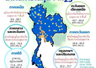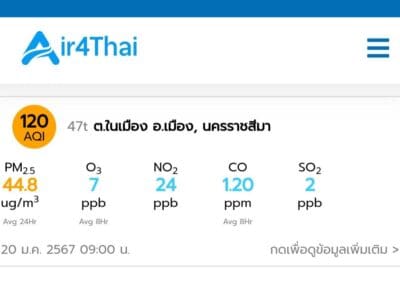นครราชสีมา-วันนี้ (20 มกราคม 2567) สำนักงานสิ่งแวดล้อมและควบคุมมลพิษที่ 11 นครราชสีมา ได้รายงานสถานการณ์ฝุ่นมลพิษวันนี้ในพื้นที่ภาคตะวันออกเฉียงเหนือ จากการตรวจวัดคุณภาพอากาศผ่านแอพพลิเคชัน Air4Thai พบว่า อยู่ในระดับเริ่มมีผลกระทบต่อสุขภาพ ใน 5 พื้นที่ คือที่ จ.นครราชสีมา อุบลราชธานี ขอนแก่น กาฬสินธุ์ และ จ.เลย  ที่ค่าฝุ่น PM2.5 พุ่งสูง เฉลี่ยตรวจวัดได้ 18.7-60.8 ไมโครกรัมต่อลูกบาศก์เมตร ซึ่งที่ จ.นครราชสีมา  บริเวณสถานีสูบน้ำประตูพลแสน ต.ในเมือง อ.เมืองนครราชสีมา ตรวจวัดผ่านแอพฯ Air4Thai วันนี้ พบว่า คุณภาพอากาศอยู่ในระดับสีส้ม  เริ่มมีผลกระทบต่อสุขภาพ โดยค่าฝุ่น PM2.5 อยู่ที่ 44.8ไมโครกรัมต่อลูกบาศก์เมตร   ดัชนีคุณภาพอากาศ Air Quality Index ตรวจวัดได้ที่ 120 AQI ซึ่งฝุ่นมลพิษในอากาศเริ่มมีปริมาณเพิ่มขึ้น ไต่ระดับจนมีผลกระทบต่อสุขภาพมาหลายวันแล้ว โดยปัจจัยส่วนใหญ่เกิดจากการเผาเศษซากผลผลิตทางการเกษตรในที่โล่งแจ้งมากที่สุด และมีปัจจัยอื่นๆ ร่วมด้วย อาทิ ควันดำจากการเผาไหม้ที่ไม่สมบูรณ์ของเครื่องยนต์ , การเผาขยะ ,ไฟป่า เป็นต้น แม้ว่านายสยาม ศิริมงคล ผู้ว่าราชการจังหวัดนครราชสีมา จะสั่งกำชับทั้ง 32 อำเภอ รณรงค์ประชาชนและเกษตรกรให้งดเผาขยะหรือซากพืชผลทางการเกษตร โดยออกประกาศเป็นคำสั่งจังหวัดฯ สั่งทุกพื้นที่งดเผาซากพืชผลเกษตร หากฝ่าฝืนลักลอบเผาโดยไม่ขออนุญาตเจ้าหน้าที่ฯ ให้ทราบ  ก็ให้ดำเนินคดีตามกฎหมายจับ-ปรับทันที ไม่มีการละเว้น