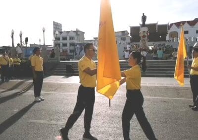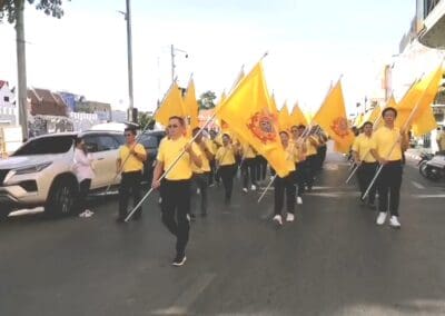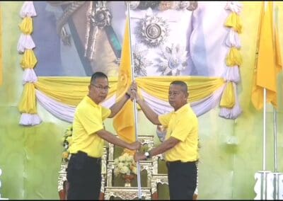 โดยนายชัยวัฒน์ ชื่นโกสุม ผู้ว่าราชการจังหวัดนครราชสีมา ได้นำหัวหน้าส่วนราชการ และประชาชน กว่า 1,000 คน สวมใส่เสื้อสีเหลืองตราสัญลักษณ์ อันเชิญธงตราสัญลักษณ์ ส่งมอบให้ พล.ท.อดุลย์ บุญธรรมเจริญ แม่ทัพภาคที่ 2 ก่อนส่งต่อให้กับ ดร.ยลดา หวังศุภกิจโกศล นายกองค์การบริหารส่วนจังหวัดนครราชสีมา พร้อมกับเชิญธงทั้ง 72 ธง ในกิจกรรมเดิน วิ่ง ปั่น ธงตราสัญลักษณ์ฯ จากสนามหน้าศาลากลางจังหวัดฯ ไปยังหน้าอนุสาวรีย์ท้าวสุรนารี(คุณย่าโม) เขตเทศบาลนครนครราชสีมา ระยะทาง 500 เมตร แล้วส่งธงมอบต่อให้กับนายชัชวาล วงษ์จร รองนายกเทศมนตรีนครนครราชสีมา เชิญธง เดิน วิ่ง ปั่น ต่อไปยัง ต.โคกกรวด อ.เมืองฯ และ อ.สูงเนิน ตามลำดับ