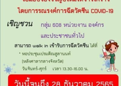 ทางจังหวัดฯ จึงมอบของขวัญปีใหม่ให้กับพี่น้องประชาชนในจังหวัดฯ โดยเร่งรณรงค์ให้ไปฉีดวัคซีนป้องกันโควิด 19 กันล่วงหน้าก่อนเทศกาลปีใหม่ 2566 โดยเฉพาะกลุ่มเสี่ยง 608 กลุ่มเปราะบาง ตลอดจน หน่วยงาน องค์กร และประชาชนทั่วไป สามารถ Walk In เข้ารับวัคซีนได้ที่หอประชุมเปรมติณสูลานนท์ ด้านหลังศาลากลางจังหวัดนคราชสีมา ในวันจันทร์ถึงวันศุกร์ ช่วงบ่าย เวลา 13.30 น. – 16.00 น. ซึ่งจุดบริการพิเศษแห่งนี้ จะเปิดให้บริการไปจนถึงวันที่ 28 ธันวาคม 2565