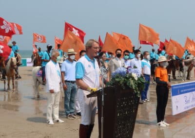 นายสุวัจน์ ลิปตพัลลภ อดีตรองนายกรัฐมนตรี ในฐานะประธานที่ปรึกษาการจัดการแข่งขันฯ กล่าวว่า “บีช โปโล” เป็นรายการแข่งขันขี่ม้าโปโลบนชายหาดที่ยิ่งใหญ่ที่สุดรายการเดียวในภูมิภาคเอเชีย ซึ่งจัดต่อเนื่องมาเป็นครั้งที่ 11 โดยได้รับความร่วมมือจากหลายฝ่ายทั้งภาครัฐและเอกชน รวมถึงสมาคมกีฬาขี่ม้าแห่งประเทศไทย มูลนิธิ ณภาฯ และจังหวัดประจวบคีรีขันธ์ที่ร่วมกันจัดงาน และได้เลือก “หัวหิน” ซึ่งเป็นเมืองท่องเที่ยวระดับโลกเป็นสถานที่จัดกิจกรรมกีฬาระดับนานาชาตินี้มาโดยตลอด