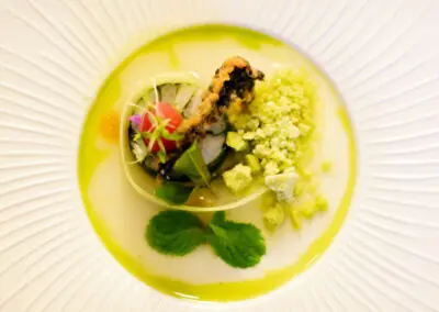 ภายในงานได้จัดเสิร์ฟเมนู Fine Dining จำนวน 5 คอร์ส ที่ดัดแปลงจากวัตถุดิบพื้นบ้าน ให้เป็นอาหารไทยร่วมสมัย ได้แก่