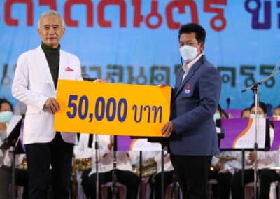 โดยนายสุวัจน์ ลิปตพัลลภ ได้ร่วมสนับสนุนทุนในการพัฒนาดนตรีกับ ร.ร.สุรนารี จำนวน 5 หมื่นบาท พร้อมให้กำลังใจให้ประสบความสำเร็จ