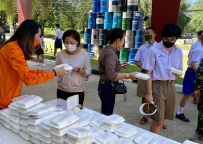 ศูนย์คนโคราชรักจริงไม่ทิ้งกัน ซึ่งที่ผ่านมาทางศูนย์ตนโคราชรักจริงไม่ทิ้งกันฯ ก็เริ่มตั้งแต่ทำหน้ากากและแอลกอฮอล์แจก ออกฉีดพ่นแอลกอฮอล์นอกสถานที่ และระดับสองจัดทำโรงครัวหลวงพ่อ ทำข้าวกล่องวันละ 1,000 กล่อง ออกแจกจ่ายพี่น้องประชาชนทุกวันและระดับสาม คือ จัดทำถุงน้ำใจ เป็นข้าวสาร อาหารแห้งและน้ำ