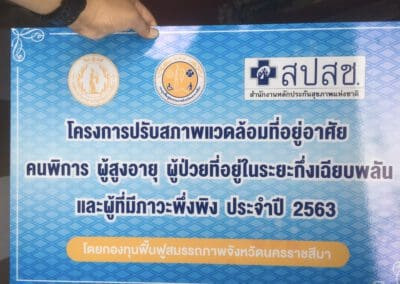 สจ.รัชฎา ใจกล้า เป็นตัวแทนองค์การบริหารส่วนจังหวัดนครราชสีมา และ นายก อบต.พะเนา พร้อม จนท.ผู้เกี่ยวข้องมอบป้ายโครงสร้างสภาพแวดล้อมที่อยู่อาศัย คนพิการ ผู้สูงอายุ ผู้ป่วยทีอยู่ในระยะเฉียบพลัน และผู้มีภาวะพึ่งพิง ประจำปี 2563 โดยปรับปรุงบ้านพักให้กับ คุณยายเปรม จารึกโพธิ์ บ.พะเนา ต.พะเนา อ.เมือง 20 สิงหาคม 2563
