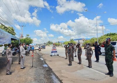 ณ พื้นที่ อ.ห้วยแถลง จ.นครราชสีมา นายกอบชัย บุญอรณะ ผวจ.นครราชสีมา เป็นประธานรับมอบอุปกรณ์สนับสนุนการจัดตั้งโรงพยาบาลสนามอำเภอห้วยแถลง จำนวน 130 เตียง จากผู้บริหารธนาคารออมสิน ภาค 11 ตามโครงการ ” ออมสินห่วงใย ส่งกำลังใจให้สังคม” พร้อมทั้งตรวจเยี่ยมการเตรียมความพร้อมเป็นโรงพยาบาลสนาม ณ โรงเรียนห้วยแถลงพิทยาคม จากนั้น เดินทางไปตรวจเยี่ยมจุดตรวจสกัดคัดกรองแบบบูรณาการของอำเภอห้วยแถลง ตรวจเยี่ยมศูนย์พักคอย (Community Isolation :Ci) ของเทศบาลตำบลหินดาด ที่มีระบบการจัดการที่ดีและรับผู้ป่วยได้ 40 เตียง ทั้งนี้ ได้ให้กำลังใจเจ้าหน้าที่ที่เกี่ยวข้องและให้คำแนะนำในการดำเนินงาน เพื่อให้การแก้ไขปัญหาการแพร่ระบาดของโรคโควิด-19 เป็นไปด้วยความเรียบร้อย