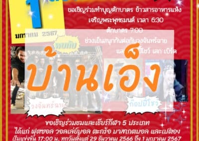 ต้อนรับปีใหม่ขอเชิญร่วมทำบุญตักบาตร ข้าวสารอาหารแห้ง เจริญพระพุทธมนต์ เวลา 6:30