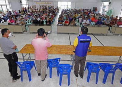 ด้านตัวแทนชาวบ้านสูงเนิน ตั้งกระทู้ถามนายกสมาคมฯ ว่า จะมีทางออกและเยียวยาสมาชิกอย่างไร คือ