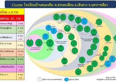 สำหรับคลัสเตอร์บ้านหนองหิน จุดเริ่มต้นเกิดจากคนในชุมชนไปรับเชื้อมาจากภายนอกและกระจายเชื้อไปสู่กลุ่มนักเรียน แล้วกลุ่มนักเรียนก็แพร่เชื้อไปยังผู้ปกครองและครอบครัว เชื้อจึงกระจายออกไปวงกว้างถึง 8 วง ซึ่งตอนนี้ยังไม่สามารถประเมินจำนวนของผู้เสี่ยงสูงได้ ในที่ประชุมของคณะกรรมการโรคติดต่อของจังหวัดนครราชสีมา จึงต้องประกาศปิดหมู่บ้านหนองหิน เพื่อจำกัดวงคนในพื้นที่ ไม่ให้ไปแพร่เชื้อไปยังจุดต่างๆ ทั้งนี้ บ้านหนองหิน มีทั้งหมด 185 หลังคาเรือน ประชากรมีทั้งสิ้น 640 คน มีประชากรอยู่จริง 400 กว่าคน หลังจากนี้ จะให้ทางผู้นำชุมชน อสม. และปกครอง ตรวจเข้มควบคุมบุคคลเข้าออกในพื้นที่อย่างเคร่งครัด จะปิดทุกเส้นทางที่จะเข้ามาในหมู่บ้าน โดยจะเปิดเพียงเส้นทางเดียวเท่านั้น คือทางเส้นทางหลักของหมู่บ้าน ซึ่ง ตอนนี้ในพื้นที่อำเภอเสิงสาง มีผู้ป่วยที่พักรักษาอยู่ที่โรงพยาบาลเสิงสาง ที่บ้าน และที่โรงเรียนบ้านหนองหิน รวม 96 ราย รวมยอดผู้ป่วยติดเชื้อสะสมอยู่ที่ 980 ราย คาดว่า คลัสเตอร์บ้านโรงเรียนหนองหิน จะสามารถควบคุมสถานการณ์ไว้ในวงจำกัดได้ภายใน 10 วัน .