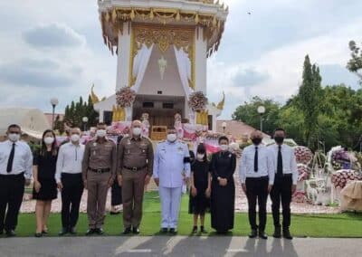 พันตำรวจเอก คเชนท์ เสตะปุตตะ ผู้กำกับการ สภ.จอหอ จังหวัดนครราชสีมา บุตรชายผู้เสียชีวิต เปิดเผยว่า มารดาของตนมีนิสัยชอบช่วยเหลือผู้ด้อยโอกาส และทำบุญอยู่เป็นประจำ หลังจากมารดาได้เสียชีวิต ครอบครัวจึงมีไอเดียจัดเมรุปันสุข นำอาหารแห้งมาใช้แทนดอกไม้ตกแต่งงานศพ โดยประสานร้านตุ๊กดอกไม้ ตลาดใหม่แม่กิมเฮง มาดำเนินการประดับตกแต่งเมรุโดยใช้ซองบะหมี่กึ่งสำเร็จรูป จำนวน 2,000 ซอง บะหมี่กึ่งสำเร็จรูปแบบถ้วย 600 ถ้วย และข้าวสารบรรจุ 5 กิโลกรัม จำนวน 80 ถุง โดยหลังจากเสร็จงานศพครอบครัวตั้งใจนำบะหมี่กึ่งสำเร็จรูป และถุงข้าวสารทั้งหมดไปมอบให้ประชาชนผู้ที่เดือดร้อน และกำลังประสบปัญหาจากสถานการณ์การแพร่ระบาดของโควิด-19 ต่อไป.