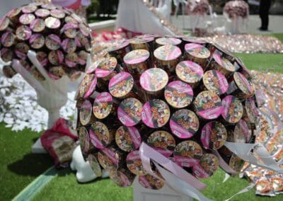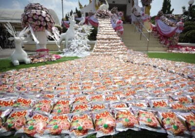 งานศพเมรุปันสุข ตกแต่งด้วยบะหมี่กึ่งสำเร็จรูป และข้าวสาร หลังเสร็จงานนำไปแจกจ่ายให้ผู้ที่เดือดร้อนจากภัยโควิด-19