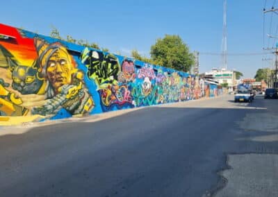 นักท่องเที่ยวแห่ถ่ายรูปเซลฟี่กำแพงศิลปะกราฟฟิตี้โคราช ฝีมือศิลปินกราฟฟิตี้ทั่วประเทศกว่า 30 ชีวิต เนรมิตกำแพงธรรมดาให้กลายเป็นกำแพงศิลปะกราฟฟิตี้ร่วมสมัย ยาวที่สุดในภาคอีสาน