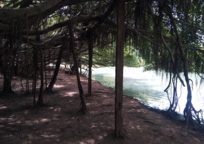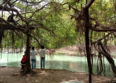 นักท่องเที่ยว งง ! สระน้ำภายในอุทยานไทรงามพิมาย กลายเป็นสีเขียวอมฟ้า ดูแปลกตา ชลประทาน แจง ไม่ใช่น้ำเน่า แต่ใส่สารปรับสภาพน้ำ ไม่ให้เน่าเสีย