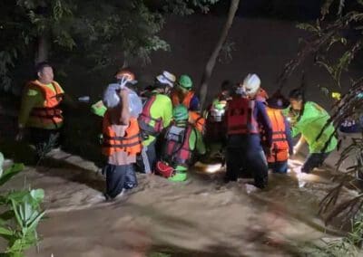 นาทีวิกฤติ กู้ภัยโคราช ระดมทีมช่วยเหลือชาวบ้านปากช่อง หลังกระแสน้ำป่าเขาใหญ่หลากรุนแรงท่วมเสียหาย ต้องฝ่าน้ำขึงแนวเชือกเข้าช่วยเหลือ ขณะที่ชุมชนเมืองปากช่องน้ำเอ่อท่วม หลายจุดน้ำสูงเกือบมิดหลังคารถ