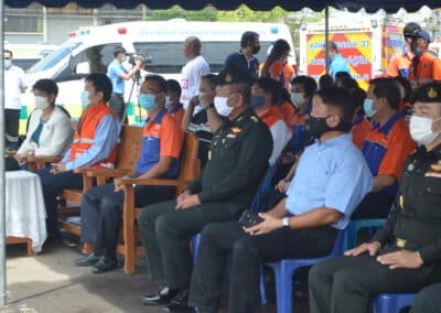ซึ่งเรื่องที่ยังกังวลแต่ได้แจ้งทุกท้องถิ่นไปแล้ว ก็คือ เรื่องการสำรวจเส้นทางไหลของน้ำว่าไปในทิศทางใด และมีสิ่งกีดขวางทางน้ำอยู่หรือไม่ เช่น วัชพืช สันดอนดินฯลฯ ขอให้ท้องถิ่นรีบจัดการเสียโดยเร็ว เพื่อเปิดทางให้มวลน้ำไหลไปได้ ป้องกันน้ำเอ่อท่วมชุมชน ส่วนบางพื้นที่ที่ใช้ต้นกกมาหน่วงน้ำ ได้แจ้งไปแล้วอย่าปลูกต้นกกเพื่อหน่วงน้ำที่ไหลหลากเอาไว้ ขอให้ไหลไปตามธรรมชาติ ก็จะช่วยบริหารจัดการน้ำไม่ให้ท่วมขังในพื้นที่ได้ แต่ทั้งนี้สามารถจะสูบดึงน้ำระหว่างเส้นทางไปเก็บกักเอาไว้ได้ ส่วนกระแสลมที่จะพัดมาพร้อมกับฝน ขอให้ทุกพื้นที่ดูแลต้นไม้ใหญ่ ป้ายโฆษณาต่างๆ รวมถึงบ้านเรือน สิ่งปลูกสร้าง ต้องตรวจสอบให้อยู่ในสภาพที่มั่นคงแข็งแรงด้วย ป้องกันไม่ให้เกิดความเสียหายหรือเกิดอุบัติเหตุไม่คาดคิด ขึ้นได้ ซึ่งทุกพื้นที่จะต้องเฝ้าติดตามการพยากรณ์สภาพอากาศจากกรมอุตุนิยมวิทยา และการประเมินสถานการณ์จากกรมป้องกันและบรรเทาสาธารณภัยอย่างต่อเนื่องด้วย และจะต้องเตรียมพร้อมป้องกัน และประเมินสถานการณ์แต่ละระยะให้ดี เพื่อรับมือสาธารณภัยได้อย่างเหมาะสม รวดเร็ว ซึ่งทาง ปภ.จังหวัด ได้เตรียมเครื่องสูบน้ำเคลื่อนที่ไว้พร้อมสำหรับช่วยผลักดันน้ำกรณีมีท้องถิ่นร้องขอความช่วยเหลือแล้ว