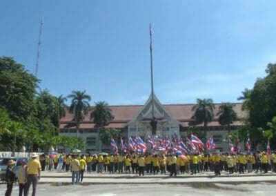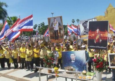 ประชาชนชาวโคราชหลายร้อยคน สวมเสื้อสีเหลือง เดินขบวนปกป้องสถาบัน