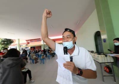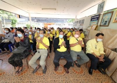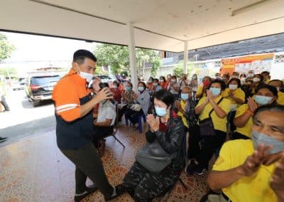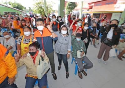 “พวกท่านเก่งจริงๆ ถึงแม้สถานการณ์โควิดติดกันมาก แต่ไม่มีผู้เสียชีวิต การ์ดอย่าตก หมั่นล้างมือ รักษาระยะห่าง ดูแลสุขภาพให้แข็งแรง และขอขอบคุณเทศบาลฯ มีความเป็นห่วงเป็นใยพี่น้องประชาชน ในช่วงที่วัคซีนยังขาดอยู่ก็ได้จัดหาวัคซีน 2 หมื่นโดส มาฉีดให้ทุกคน ทำให้ทุกคนมีภูมิคุ้มกันหมู่ ซึ่งคาดการณ์ว่ากลางปีนี้ สถานการณ์โควิดจะเป็นโรคประจำถิ่นเหมือนไข้หวัดธรรมดา