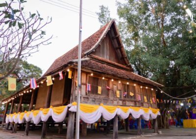 ซึ่งไฮไลต์ของงาน นอกจากจะมีผัดหมี่ตะคุแท้ สินค้าประจำตำบล แจกฟรีภายในงานแล้ว ยังเปิดพื้นที่ให้เที่ยว ชมโบราณสถานและโบราณวัตถุ สร้างตั้งแต่ปี พ.ศ.2330 หรือประมาณ 239 ปี มาแล้ว อาทิ อุโบสถเก่า ที่ได้รับการขึ้นทะเบียนเป็นโบราณสถาน ตั้งแต่ พ.ศ.2539 และได้รับรางวัล “อนุรักษ์ศิลปะสถาปัตยกรรมดีเด่น” ประเภทปูชนียสถานและวัดวาอาราม ประจำปี 2552 และยังมี “หอไตรกลางน้ำโบราณ” ที่โดดเด่นด้วยสถาปัตยกรรมที่งดงาม มีภาพวาดจิตรกรรมฝาผนังอยู่ภายใน โดยฝีมือของช่างหลวงโบราณ ยุครัตนโกสินทร์ตอนต้น และร่วมปิดทองไหว้เจดีย์พระธาตุทรงระฆัง หรือ “ธาตุแบบบัวเหลี่ยม” ซึ่งทั้งหมดล้วนเป็นเพชรเม็ดงามทางวัฒนธรรมของชาวบ้านตะคุ ที่อยากชวนให้ชาวโคราชพื้นที่อื่นๆ และนักท่องเที่ยวได้มาเที่ยวชม