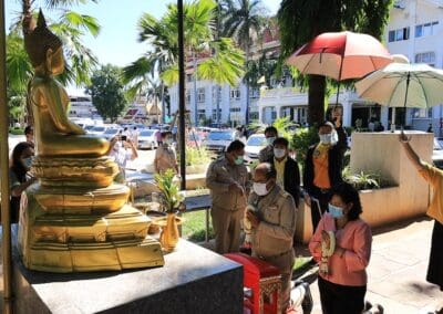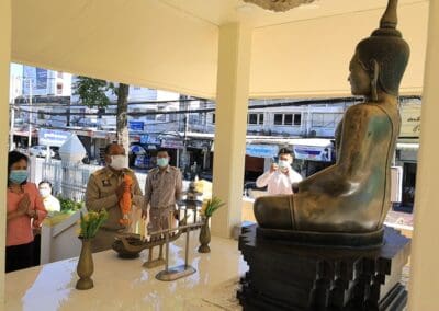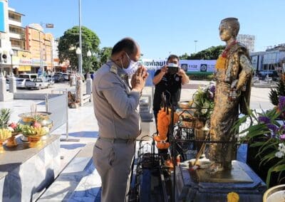 นครราชสีมา- วันนี้(31พฤษภาคม 2564) เวลา 09.09 น ที่บริเวณลานอนุสาวรีย์ท้าวสุรนารี อ.เมืองนครราชสีมา จ.นครราชสีมา นายกอบชัย บุญอรณะ ผู้ว่าราชการจังหวัดนครราชสีมาคนใหม่ และนางสายชล บุญอรณะ นายกเหล่ากาชาดจังหวัดนครราชสีมา เดินทางสักการะอนุสาวรีย์ท้าวสุรนารี ภายหลังเข้ารับตำแหน่งผู้ว่าราชการจังหวัดนครราชสีมาในวันนี้ พร้อมเดินทางไปกราบสักการะศาลาเจ้าพ่อหลักเมือง และกราบสักการะพระบรมราชานุสาวรีย์ พระบาทสมเด็จพระจุลจอมเกล้าเจ้าอยู่หัวฯ รัชกาลที่ 5 (ร.5) บริเวณหน้าศาลากลางจังหวัดนครราชสีมา ก่อนเดินทางเข้าปฏิบัติงานภายในศาลากลางจังหวัดนครราชสีมา โดยมีส่วนราชการและประชาชน มาคอยให้การต้อนรับ พร้อมนำกระเช้าดอกไม้ มามอบเป็นกำลังใจในการเดินทางมารับตำแหน่งที่จังหวัดนครราชสีมา