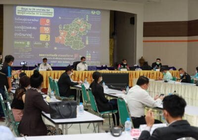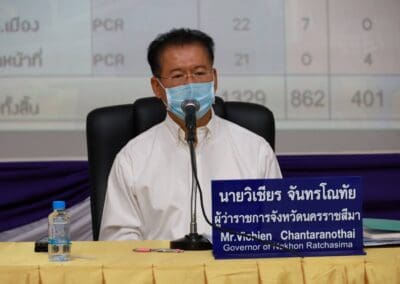 นครราชสีมา-วันนี้ (26 มกราคม 2564) ที่หอประชุมเปรมติณสูลานนท์ศาลากลางจังหวัดนครราชสีมา นายวิเชียร จันทรโณทัย ผู้ว่าราชการจังหวัดนครราชสีมา พร้อมด้วย นายศักดิ์สิทธิ์ สกุลลิขเรศสีมา รอง ผวจ.นม นายชาญชัย บุญอยู่ รองนายแพทย์สาธารณสุขจังหวัดนครราชสีมา ร่วมกันประชุมคณะกรรมการโรคติดต่อจังหวัด เพื่อประเมินสถานการณ์และวางมาตรการในการป้องกันแพร่ระบาดของไวรัสโควิด-19ในพื้นที่จังหวัดนครราชสีมา