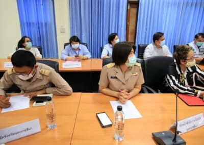 นครราชสีมา-วันนี้ (26 เมษายน 2564) ที่ห้องประชุมสำนักงานการท่องเที่ยวและกีฬาจังหวัดนครราชสีมา นายวิเชียร จันทรโณทัย ผู้ว่าราชการจังหวัดนครราชสีมา พร้อมด้วยนายศักดิ์สิทธิ์ สกุลลิขเรศสีมา รองผู้ว่าราชการจังหวัด ,พญ.อารีย์ เชื้อเดช รองนายแพทย์สาธารณสุขจังหวัด และคณะกรรมการโรคติดต่อจังหวัด ประชุมวางมาตรการการควบคุมการแพร่ระบาดของไวรัสโควิด-19 ในพื้นที่จังหวัดนครราชสีมา ซึ่งล่าสุดในพื้นที่พบผู้ติดเชื้อ ใน 26 อำเภอแล้วจากทั้งหมด 32 อำเภอ และพบผู้ติดเชื้อรายใหม่ 20 ราย พบในพื้นที่ อ.เมือง 12 ราย อ.สีคิ้ว 3 ราย อ.บัวใหญ่ 2 ราย อ.ปากช่อง 2 ราย และ อ.สูงเนิน 1 ราย รวมมียอดผู้ป่วยสะสม 467 ราย รักษาหาย 88 ราย ยังรักษาอยู่ 378 ราย เสียชีวิต 1 ราย