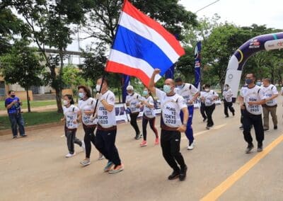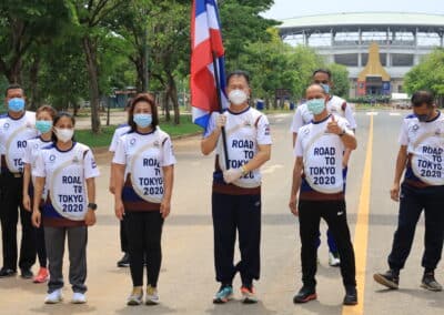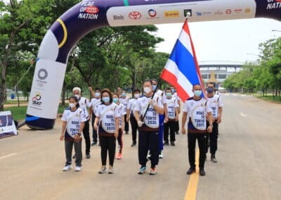 นครราชสีมา – วันนี้ (15 พฤษภาคม 2564) ที่สนามกีฬาเฉลิมพระเกียรติ 80 พรรษา อ.เมือง จ.นครราชสีมา นายวิเชียร จันทรโณทัย ผู้ว่าราชการจังหวัดนครราชสีมา พร้อมด้วยพันตรีหญิงอุดมพร พลศักดิ์ อดีตนักกีฬายกน้ำหนักทีมชาติไทย เจ้าของเหรียญทองกีฬาโอลิมปิกเกมส์ ครั้งที่ 28 พันตรีสมจิต จงจอหอ อดีตนักกีฬาชกมวยสากลสมัครเล่นทีมชาติไทย เจ้าของเหรียญทองกีฬาโอลิมปิกเกมส์ ครั้งที่ 29 และส่วนราชการ ประชาชนร่วมกิจกรรม วิ่งธงชาติไทย รวมใจสู่ชัยชนะ โดยผู้ว่าราชการจังหวัดนครราชสีมาได้นำคณะนักวิ่ง ร่วมถือธงชาติไทยวิ่งระยะทาง 1 กิโลเมตร ก่อนส่งต่อธงชาติไทยวิ่งต่อไปยังจังหวัดบุรีรัมย์ สำหรับกิจกรรมวิ่งธงชาติไทย รวมใจสู่ชัยชนะ เป็นกิจกรรมที่พี่น้องชาวไทยทุกคนจะได้มีส่วนร่วมวิ่งถือธงชาติไทยให้ธงไตรรงค์ไปโบกสะบัดในพิธีเปิดโอลิมปิก ปี 2020 ธงไตรรงค์ผืนนี้จะถูกส่งให้กับทัพนักกีฬาทีมชาติไทยเพื่อถือเข้าสนามในพิธีเปิดกีฬาโอลิมปิกโตเกียว 2020 ที่จะจัดขึ้นระหว่างวันที่ 23 กรกฎาคม ถึง 8 สิงหาคม 2564 ณ กรุงโตเกียว ประเทศญี่ปุ่น โดยผ่าน 35 จังหวัด ต่อเนื่อง 61 วัน รวมระยะทาง 4,606 กิโลเมตร หรือเทียบเท่าระยะทางจากกรุงเทพฯ ถึงโตเกียว