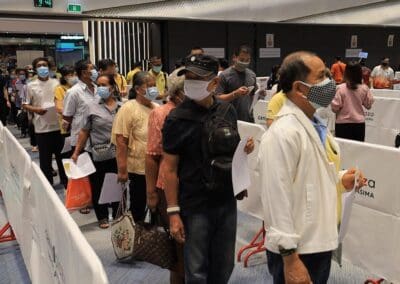 ด้านนายวิเชียร จันทรโณทัย ผู้ว่าราชการจังหวัดนครราชสีมา เปิดเผยว่า พี่น้องประชาชนชาวจังหวัดนครราชสีมา โดยเฉพาะในพื้นที่ อ.เมือง ให้ความสนใจเดินทางมารอฉีดวัคซีนต้านไวรัสโควิด-19 ตามที่ได้มีการนัดหมายเป็นจำนวนมาก ซึ่งจังหวัดนครราชสีมา ได้เริ่มเปิดฉีดวัคซีนให้กับประชาชนทั่วไปที่ลงทะเบียน พร้อมกับกลุ่มเสี่ยง 2 กลุ่ม ไปพร้อมกันเนื่องจากมีความพร้อมหลังจากมีการทดสอบระบบมาตั้งแต่วันที่ 19-23 พ.ค.64 ที่ผ่านมา จึงทำให้สามารถเริ่มทยอยฉีดให้กับประชาชนทั่วไปได้ทันที ก่อนกำหนด ที่เดิมกำหนดไว้ ต้นเดือน มิ.ย.64 อย่างไรก็ตามประชาชนทั่วไปที่จะเข้ารับการฉีดวัคซีนนั้น จะต้องลงทะเบียนผ่านระบบเพื่อนัดวันฉีดวัคซีน การวอล์คอิน ไม่สามารถจะเข้ามารับฉีดวัคซีนได้ ต้องจองคิวเท่านั้น เนื่องจากจะต้องมีการเตรียมความพร้อมในด้านต่างๆ รองรับกับประชาชนที่จะเดินทางมาฉีดวัคซีน ซึ่งหากวอร์คอินเข้ามาจะทำให้เกิดปัญหาเรื่องการเตรียมวัคซีน ซึ่งเราจำเป็นต้องให้สิทธิ์ประชาชนที่ลงทะเบียนก่อน เพื่อไม่ให้เกิดความวุ่นวาย การลงทะเบียนจองนั้นไม่ยากอย่างที่คิด สามารถเลือกวันเวลา ที่จะรับวัคซีนได้อีกด้วย