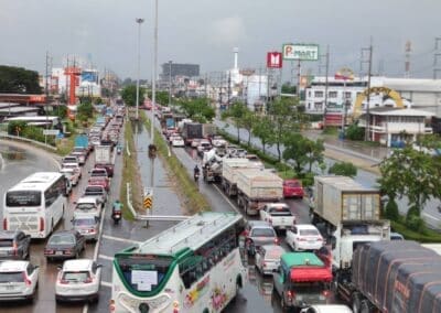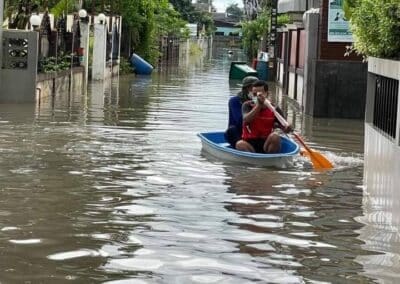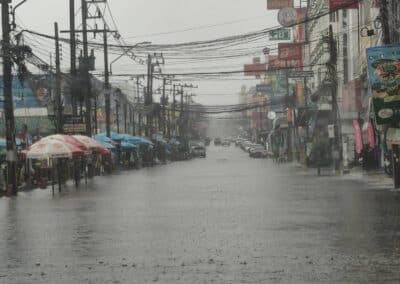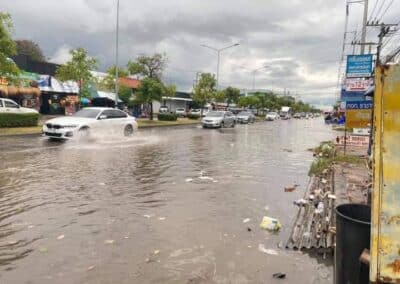 นครราชสีมา – วันนี้ (28 สิงหาคม 2564) เวลา 17.00 น. ได้เกิดฝนตกลงมาอย่างหนักในพื้นที่ อ.เมือง จ.นครราชสีมา โดยฝนได้ตกลงมาอย่างหนักนานกว่า 30 นาที ส่งผลให้เกิดน้ำท่วมขังบนถนนหลายสาย โดยเฉพาะถนนมิตรภาพฝั่งขาออกจากตัวเมืองนครราชสีมา หน้าตลาดเซฟวัน ต.ในเมือง อ.เมืองนครราชสีมา ได้เกิดน้ำท่วมขังพื้นผิวจราจรระดับน้ำสูงกว่า 40 เซนติเมตร ระยะทางยาวประมาณ 600 เมตร รถเล็กไม่สามารถผ่านสัญจรไปได้ ส่งผลให้เกิดการจราจรติดขัดยาวกว่า 2 กิโลเมตร ขณะเดียวกันก็ได้มีนำไหลเข้าท่วมถนนบริเวณชุมชนการเคหะ หลังตลาดเซฟวัน ระดับน้ำสูงประมาณ 30=40 เซนติเมตร ทำให้รถยนต์สัญจรผ่านไปมาด้วยความยากลำบาก นอกจากนี้ยังมีน้ำไหลเข้าท่วมชุมชนรุ่งเรืองบุญเรือง ภายในเขตเทศบาลนครนครราชสีมา ระดับน้ำสูงกว่า 50 เซนติเมตร ชาวบ้านต้องใช้เรือท้องแบนในการสัญจรเข้าบ้านเรือน ซึ่งขณะนี้ฝนได้เริ่มเบาบางลงแล้ว จึงคาดว่าระดับน้ำจะลดลงกลับเข้าสู่สภาวะปกติในอีกประมาณ 2 ชั่วโมง แต่ก็ยังต้องเฝ้าระวังน้ำท่วมขังอีกครั้ง เนื่องจากท้องฟ้ายังคงมีเมฆปกคลุมอยู่เป็นจำนวนมาก.