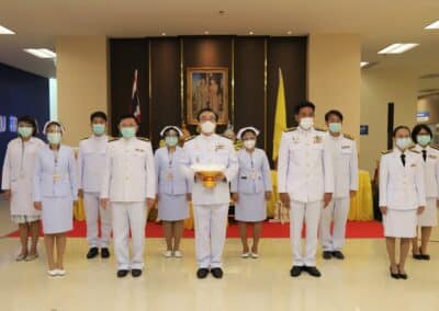 นครราชสีมา- วันนี้ (14 พฤษภาคม 2564) ที่ อาคารศูนย์ความเป็นเลิศทางการแพทย์ โรงพยาบาลมหาวิทยาลัยเทคโนโลยีสุรนารี อำเภอเมืองนครราชสีมา จังหวัดนครราชสีมา พระบาทสมเด็จพระเจ้าอยู่หัวฯ และสมเด็จพระนางเจ้าฯพระบรมราชินี ทรงพระกรุณาโปรดเกล้า โปรดกระหม่อม พระราชทานอุปกรณ์ทางการแพทย์ให้กับโรงพยาบาลในเครือข่าย โรงพยาบาลกลุ่มสถาบันแพทยศาสตร์แห่งประเทศไทย ให้กับโรงพยาบาลมหาวิทยาลัยเทคโนโลยีสุรนารี โดยมี รองศาสตราจารย์ ด็อกเตอร์ วีระพงษ์ แพสุวรรณ อธิการบดีมหาวิทยาลัยเทคโนโลยีสุรนารี เป็นประธานรับมอบสำหรับอุปกรณ์ทางการแพทย์พระราชทาน