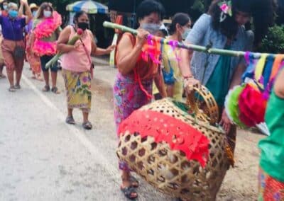 โดยคุณยายแถว กระทุ่มกลาง อายุ 84 ปี เผยสาเหตุที่มีการแห่นางแมวก็เพื่อสืบทอดประเพณีเก่าแก่ที่กำลังจะสูญหายไป ประกอบกับหลายปีผ่านมา ในพื้นที่ไม่เคยแล้งมากขนาดนี้ ผู้เฒ่าผู้แก่จึงร่วมกันจัดพิธีแห่นางแมวให้เด็กรุ่นใหม่ๆได้เห็นสืบทอด ส่วนน้องแมวที่ผ่านพิธีแห่นางแมวมาแล้ว ชาวบ้านเชื่อว่า เป็นแมวโชคลาภ ที่ใครได้ไปเลี้ยงจะเจริญรุ่งเรือง ไม่ได้เป็นการทรมานสัตว์แต่อย่างใด