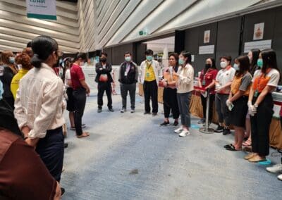 ขณะเดียวกัน ภายในห้องโคราชฮอลล์ ซึ่งเป็นจุดฉีดวัคซีน บรรดาเจ้าหน้าที่พยาบาลที่จะทำการฉีดวัคซีนก็ได้มีการประชุมวางแผนในการให้บริการฉีดวัคซีนกับประชาชน เพื่อความเรียบร้อย นอกจากนี้ ยังมีเจ้าหน้าที่ คณาจารย์ นักศึกษา ของมหาวิทยาลัยเทคโนโลยีราชมงคลอีสาน นครราชสีมา ได้ร่วมประชุมวางแผนเพื่อที่จะ ตรวจสอบรายชื่อการลงทะเบียนของประชาชน และ ชี้แจงให้ประชาชนที่ไม่ได้รับการนัดหมายทราบเพื่อไม่ให้เกิดความวุ่นวายในภายหลังได้