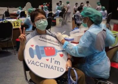 ซึ่งขณะนี้ ทาง รพ.มหาราชนครราชสีมา ยังไม่แน่ใจว่า จะได้วัคซีนแอสตร้าเซเนก้ามาจำนวนเท่าไร และจะกระจายสัดส่วนกันในรูปแบบไหน แต่ขอยืนยันว่า วันที่ 7 มิถุนายนที่จะถึง มีวัคซีนแอสตร้าฉีดให้กับ 2 กลุ่มเสี่ยง คือผู้สูงอายุมากกว่า 60 ปีขึ้นไป และกลุ่มผู้ป่วยโรคเรื้อรัง 7 กลุ่มโรค จะทยอยไล่ฉีด 2 กลุ่มนี้ให้ครบตามลำดับก่อน เพราะวัคซีนแอสตร้าเซเนก้าจะทยอยจัดส่งมาให้ทีละไม่มาก ซึ่งกลุ่มประชาชนทั่วไป อายุตั้งแต่ 18 ปีขึ้นไป จะต้องขยับวันเวลาฉีดออกไป และจะแจ้งให้ทราบอีกครั้ง อย่างไรก็ตาม คนที่ลงทะเบียนสมัครใจฉีดวัคซีนต้านโควิด19เอาไว้ รับรองว่าจะได้ฉีดทุกคน แต่อาจจะเลื่อนวันเวลาออกไปบ้าง ซึ่งในช่วงตั้งแต่ 7 มิถุนายนเป็นต้นไป ทางจังหวัดฯ ยังมีวัคซีนซิโนแวค สำรองฉีดให้ ปชช.อยู่แล้ว