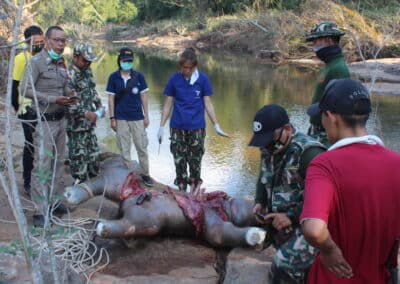 ทั้งนี้ผลการตรวจสอบของสัตวแพทย์พบว่า เป็นลูกช้างป่า เพศผู้ อายุประมาณ 1 เดือน เนื่องจากตรวจพบรกสะดือยังไม่ปิดสนิท และจากการใช้เครื่องสแกนโลหะตามตัวของลูกช้าง ไม่พบร่องรอยการถูกทำร้ายหรือมีบาดแผลใดๆ ทางทีมสัตวแพทย์ได้ทำการผ่าพิสูจน์ซากลูกช้างพบว่า อวัยวะภายในทั้งหัวใจ ปอด ตับ ไต มีอาการบวมน้ำ คาดว่าเสียชีวิตมาแล้วไม่ต่ำกว่า 3 วัน แต่ไม่เกิน 7 วัน สันนิษฐานว่าลูกช้างป่าตัวดังกล่าวเสียชีวิตจากการจมน้ำ เพราะบริเวณที่พบศพเป็นร่องน้ำลึก อีกทั้งลูกช้างยังอายุน้อยจึงมีความเป็นไปได้สูงว่า ลูกช้างอาจจะเดินตามแม่ช้าง และพลัดตกร่องน้ำลึกเสียชีวิตดังกล่าว.