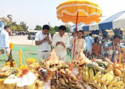 #ผ่านไปด้วยดี พิธีบวงสรวง บอกกล่าวพระแม่ธรณี เจ้าที่เจ้าทาง ในการดำเนินงานต่อในการก่อสร้าง อาคารโครงการสร้างหลวงพ่อคูณ ปริสุทโธองค์ใหญ่วัดบ้านไร่