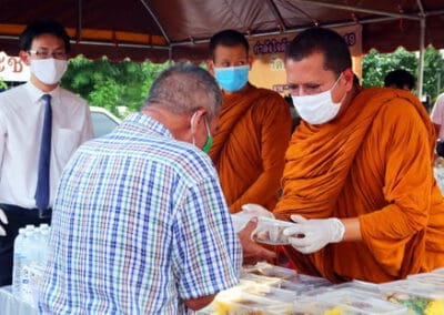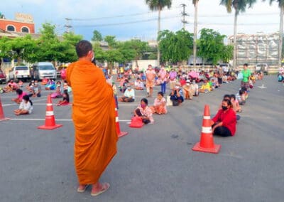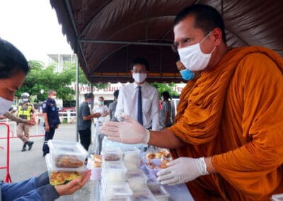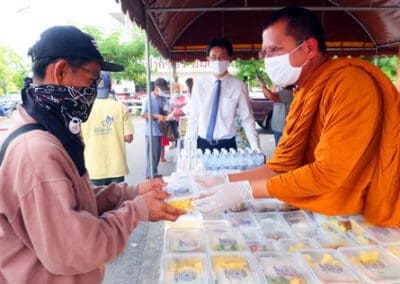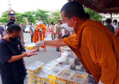 พระอาจารย์ คม อภิวโร วัดป่าธรรมคีรี (จันดี อนุสรณ์) เล่าถึงแรงบันดาลใจในการทำทานต่อนเนื่องถึง 7 ปี จนถึงวิกฤตโควิด19 มองเห็นผู้คน จิตตก กับปัญหาที่รุมเร้า ทั้งปัญหาปากท้อง เศรษฐกิจ ตกงานต่อเนื่อง รวมถึงการป้องกันร่างกายให้พ้นจาก โรคร้ายครั้งนี้ จึงรวมตัวลูกศิษย์ ในแต่ละ ความเป็นบุญมาช่วยกัน อุ้มพา คนยากไร้ ในอำเภอปากช่องด้วยการ ตั้งโรงทาน และโรงครัวโคราช เพื่อ ทำอาหาร แจกจ่ายให้กับ ประชาชน ในอำเภอปากช่อง บริเวณ หน้าที่ทำการอำเภอปากช่อง ในทุกเย็น เวลา 17.00-18.00 น. ยกเว้นเสาร์ อาทิตย์ ตลอดสองเดือนที่ผ่านมา พระอาจารย์ คม อภิวโร เล่าถึง กลยุทธในการทำทานครั้งนี้ว่า เราจะไม่แค่แจกอาหาร แจกน้ำ แต่เรามุ่งหวังที่จะนำธรรมะ เขาช่วยสร้างความเข็มแข็งให้จิตใจ ดังนั้น วิกฤตครั้งนี้ ต้องอิ่มกายและ เบิกบานใจ จิตไม่ตก มีสติ มั่นที่จะเป็นผู้ให้ต่อไปหลังจากการเป็นผู้รับ การส่งมอบทานบุญครั้งนี้ จึงเป็น จุดนำพาความสุข และพลังศรัทราจากทุกภาคส่วนในการ ให้ความร่วมมือง จึงเป็นกุศลทั้งผู้ให้และผู้รับ ที่จะมาร่วมเจิรญสติ ควบคู่การ รับอาหารใน ทุกเย็น ภาพของพระอาจารย์คม อภิวโร ก่อนแจกอาหาร (โรงครัวโคราช) จะมาให้ธรรม ให้รู้ในปัจจุบันขณะ กับผู้เขาแถว เว้นระยะห่างในการสำรวจ ตนเอง ว่าที่ผ่านมาเราขาด เราต้องการ และมีลมหายใจเพื่ออะไร การเป็นผู้อยู่ในศีล รักษาศีล 5 ตั้งใจประกอบสัมมาอาชีพ ทำตัวเองให้เป็นคุณค่าของประเทศชาติ พร้อมเป็นกำลังใจ ซึ่งกันและกัน ระดับการ เพาะบ่มของพระอาจารย์ มีศิลปะในการสื่อสาร แบ่งตามประเภท อายุ ของผู้มาร่วมรับ อาหาร มีการย้ำ สอดแทรก ธรรมะ ให้กับเยาวชน เด็กๆ พ่อแม่ และคนงาน ทำให้บรรยากาศ อบอุ่น และเป็นสุข ตลอด 2 เดือน